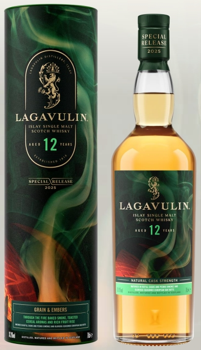 This 12-year-old Lagavulin is matured in a mix of refill casks and sherry-seasoned casks—both Pedro Ximénez and Oloroso—resulting in a powerful and smoky dram. It’s intensely peaty and phenolic, with layers of smouldering embers, wood ash, and coastal salinity, alongside faint notes of medicinal bandages and a whisper of clean, soapy freshness.